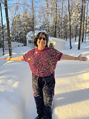 Le chandail Supernova est un excellent moyen de mettre en valeur le fil Sutton Glitz de Mont Tricot. Le modèle original est tricoté avec deux brins de Sutton Glitz tricotés ensemble (la couleur baie). Vous pouvez également le tricoter avec un brin de fil DK et un brin de Glitz pour obtenir un mini nova, moins brillant, pour un t-shirt (la couleur jaune).