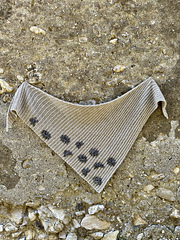 La lavorazione segue un andamento obliquo: si parte da una punta con pochissime maglie e, grazie a semplici aumenti, lo scialle cresce rapidamente fino all’altra estremità. Non sono previste rifiniture finali: il progetto è pensato per essere armonioso e completo così com’è, pronto da indossare una volta terminato.