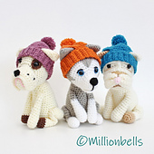 The hats fit all 3 different puppy breeds, for which the crochet patterns can be found at Millionbells Crochet Patterns. Your puppy dog will look so adorable wearing the pom-pom hat!