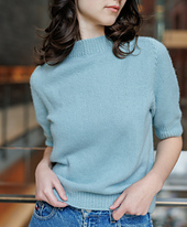 This tee is knit from the top down using a saddle shoulder construction to give a classic tailored fit in the shoulders, then uses an interesting fully fashioned increase that looks just like a cable to provide a timeless detail that will never go out of style.