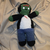 A cute and optional low-sew pattern (only bolts get sewn on and they are optional). It uses basic stitches but is considered immediate due to color changes and having to crochet limbs directly into the project.