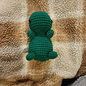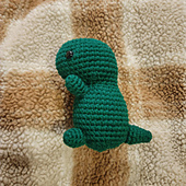 T-Rex plushie uses basic stitches making it great for beginners. It does require sewing for limbs and tail. You are able to use any yarn and hook as you please.