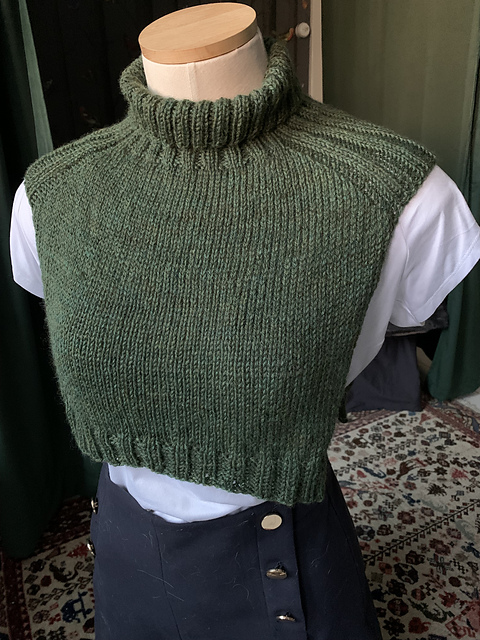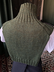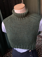 En klassisk "fusk-olle" som formas med kortvarv i nacken för en bättre passform. Storlek väljs utifrån längd på axel och det finns instruktioner för hur du ytterligare kan justera kragen. Notera att de rekommenderade 150g garn (300m) är för mönstret utan justeringar. Önskar du en längre krage eller bredare axelparti behöver du 200g DK-garn.