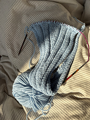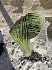 Worked from tip to center and back, shaping the edges with increases and decreases as shown in the chart. Twisted yarn overs create smooth, closed increases that flow seamlessly into the 2x3 ribbing, giving the bandana its elegant symmetry.