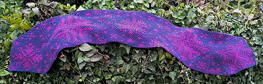 You work the modules one by one, each telling a part of the story. The snowflakes sit on the bias, like drifting crystals in a winter wind, then their paths meet through the Joining Triangles, those small bridges of stitches that bring everything together. The triangles don’t just unite the modules; they steady the scarf, levelling the edges.
