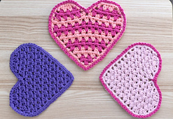 This is a free crochet pattern for a heart-shaped beermat or drink coaster.