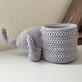 When going by gauge listed, finished project measures 3.5” tall, 4.5” wide and from trunk to back of basket 8” depth (8.9 x 11.5 x 20.4 cm). Inside diameter of basket is about 3". This animal basket can store various small items such as knitting and crochet notions, toiletries, potted plants and so much more. While also making it a stylish decoration piece for your home.