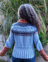 • Modified Hexa Bead cable motif across back (20 sts × 28 rows sub-motif, 6 repeats)