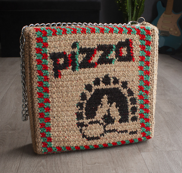 This pattern will show you how to crochet the functionnal pizza box bag. This pattern is perfect for food lovers, as it comes with a pattern for a removable pizza slice wallet.