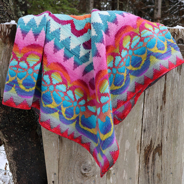 YARN: For a blanket approximately 46” across, allow about 600 g, 2400 m / 2600 yds of fingering weight wool-rich yarn in both Main and Contrast yarns.