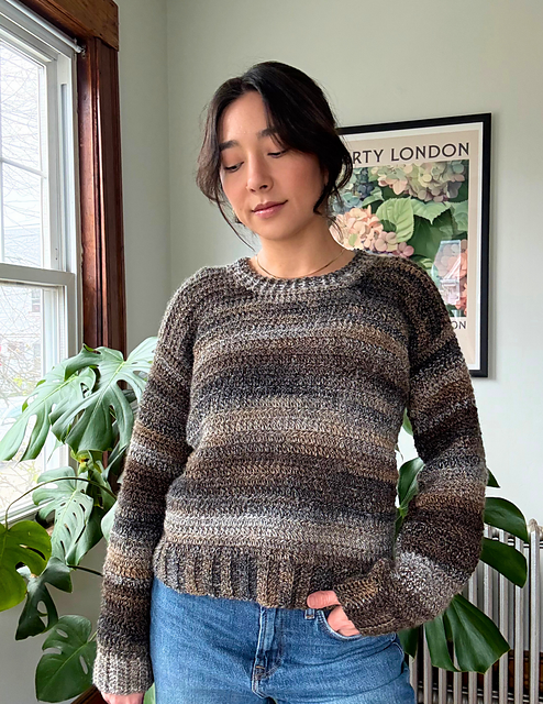 The Classic Crewneck is a beginner friendly, crochet sweater. The body panels are constructed with extended half doubles, giving the garment a subtle but wonderful texture. The neckline utilizes front and back posts for a more structured collar, while the cuffs and bottom band use a simple back-loop-only technique. The Classic Crewneck can be made with a standard casual fit, or extra oversized to create the perfect layering piece for winter.