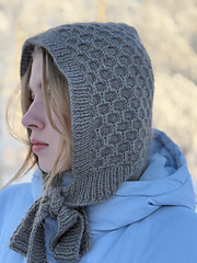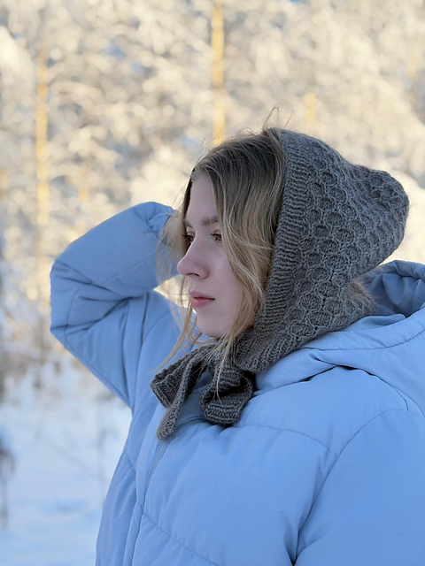 Winnie the Hood is a love letter to cozy winter moments and soft, sculptural texture. Inspired by crisp Nordic mornings and the simple need for something warmer than a beanie, this hood wraps you in comfort while adding a touch of playful charm. The stitch pattern creates a beautiful honeycomb-like surface that feels both classic and full of character—softly structured, wonderfully warm, and completely captivating to knit.