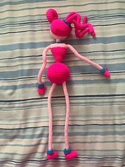 She has pipe cleaner bones in her limbs and hair for limited posing (7 total). This is totally optional.