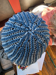 In 2-colour brioche, worked in the round, blocked but unstretched: