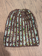 The Lallybroch Beanie is a classic folded brim beanie design knit in 2-colour brioche. It could be worn with or without a pom pom, and could be knit to a shorter length if you prefer no brim. It has crown shaping to curve around the top of the head, rather than the pointy/raised crown you see in some beanies. The hat is knit bottom up, in the round, and can be considered reversible (the crown shaping isn’t quite as clean on the wrong side, but still looks quite good if you wanted to wear it reversed). This beanie pattern is offered in 5 different size options (Baby up to Adult Large).