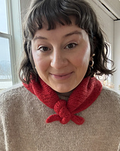 The Felted Triangle Scarf was born out of a want for a smaller bandana style knit scarf with more structure and thickness. This is a quick and easy pattern that should only take one skein of any Aran or Bulky 100% wool yarn. The ends are designed to be thinner for an easy little tie or you can use a ring that fits snug around both ends (see photos).