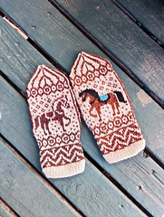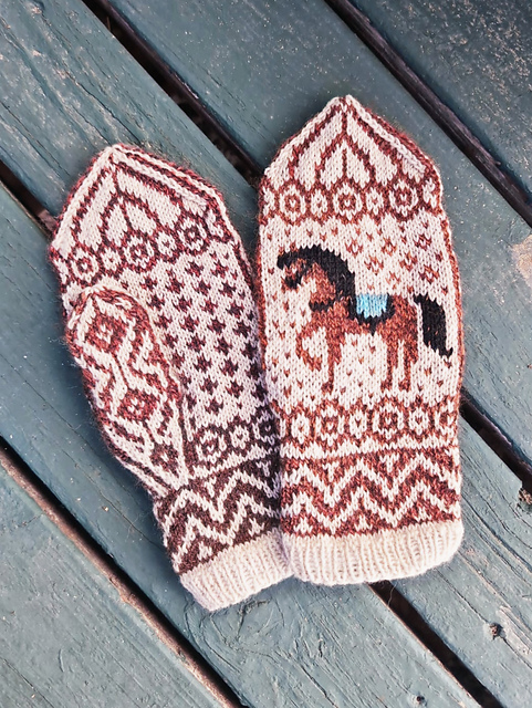 Stranded mittens with gusseted thumb and optional duplicate stitch embroidery.
