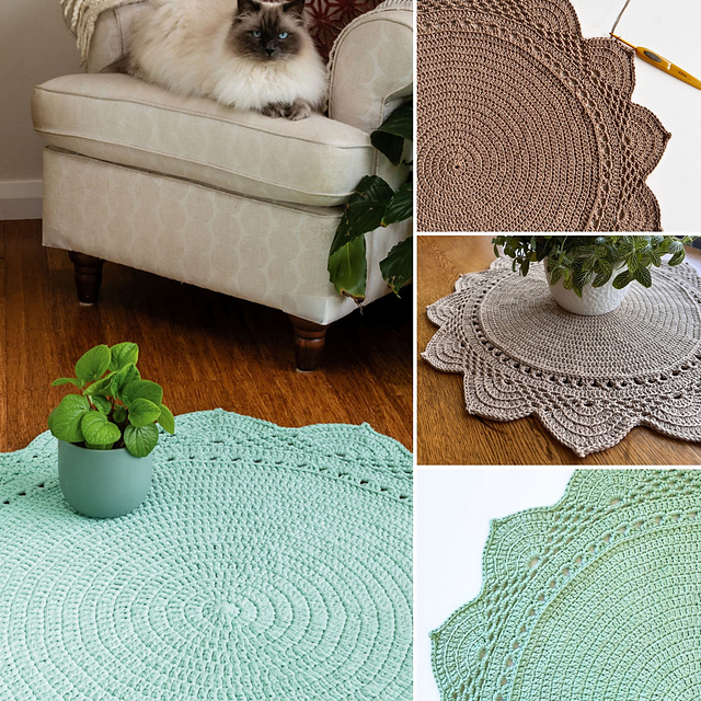 The Aster pattern creates a beautiful decorative crochet circle that can be used to create a rug, a doily, or a placemat. The pattern is the same, just adjust your yarn and hook size to achieve different results!