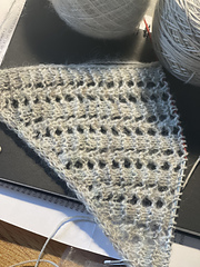 **Measurements:** Unblocked 174 cm/69” wingspan, 45cm/18” depth. Note: the fabric will grow significantly with blocking, steam or wet block to your desired size.