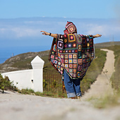 The cloak is based on a ruana (pronounced roo-AH-nah). A ruana is a traditional Andean outer garment, similar to a poncho but with an open front, resembling a large, sleeveless blanket with a slit in front, offering warmth and style as a versatile wrap for cool weather. As a massive fan of The Traitors, I decided to include an optional hood for the ruana.