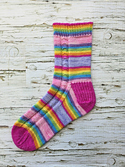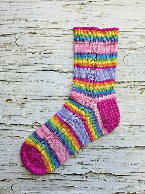 The sock is knit from the top down with a slip stitch heel flap and traditional gusset. I finished it with my version of a rounded toe.