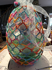 Even though you’ll be using the magical seamless join for this kind of crochet mesh, the basic Egg Cover is definitely a **BEGINNER** FRIENDLY pattern, although the curlicue tie may be more **ADVANCED BEGINNER**. But No Worries, at 11 pages, this pattern has a full photo tutorial for BOTH!