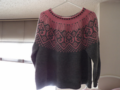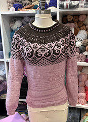 This is a classic top-down, round-yoke pullover with a unique and highly decorative design. The color combinations chosen by the testers are absolutely fantastic and really bring the pattern to life.
