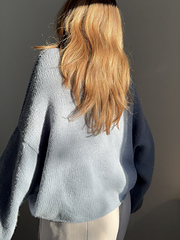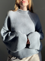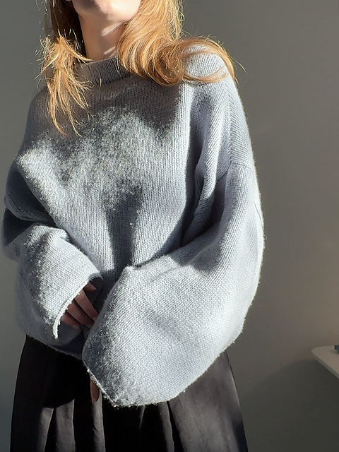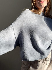 The light blue Crescent Sweater is worked in Fivel from Rauma Garn in the color 18 Blå Puddel.