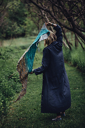 **Techniques to Indulge In:** Knitting, increasing, bias shawl shaping, eyelets, color fading, picot bind off!