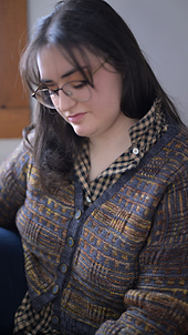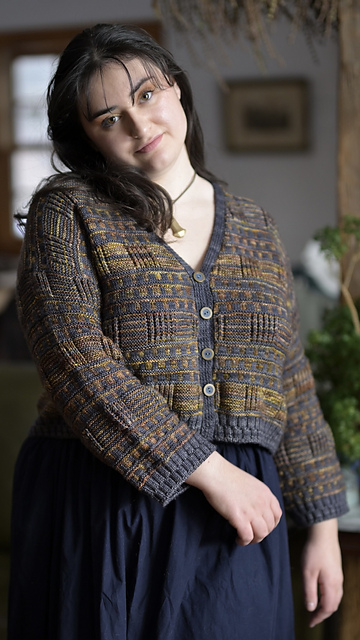 Short V-neck cardigan with Mosaic, Garter and Brioche, knit