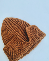 It incorporates a 1 x 1 half twisted rib stitch for a snug fit.