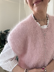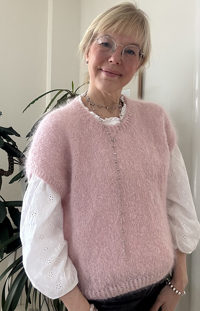 Mysig oversizeslipover i gosig mohair, Bellissima eller Bella från Permin, som stickas uppifrån och ner. Axlarna formas med förkortade varv. Föreslagen rörelsevidd är ca 20-25 cm.