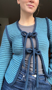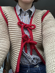 A classic sweater with i-cord bow ties and details in a (optional) contrast color. Looks good on anyone matched with anything and everything.