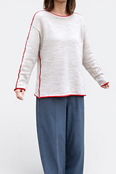 トップダウンで編むため、丈や袖の長さを調整しやすく、仕上げには袖口と裾にアイコードを施して、全体をきりっと引き締めています。色の組み合わせも楽しんでください!