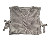 This crochet vest pattern features a structured cable panel, side ties, flattering V-neck shaping and instructions for custom sizing so you can adjust it to your own measurements.