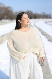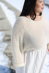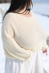 Please use any yarn that is accessible to you with which you can achieve gauge. Though I used a Suri/Silk blend, this would also look beautiful in a variety of fibers including merino, cotton, silk, or linen.