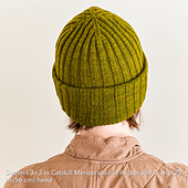 Rib gauge varies by fiber. Aim for a fabric you like, and adjust needle size as needed. Note that size steps are larger than in many hats (24 stitches between sizes), but ribbing is forgiving and accommodates a range of head circumferences.