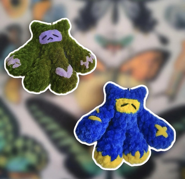 This adorable monster plush keychain is a quick and beginner-friendly project with a soft, fluffy texture and a simple, chubby silhouette. Made with plush yarn, it works up fast and creates a cute, squishy companion perfect for bags, keys, or gifts. The design features a rounded body with tiny arms and legs, giving it a cozy, whimsical look.