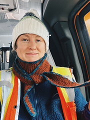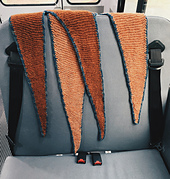Bus Mornings is knit in garter stitch, casting on at the beginning of one shawl wing, then increasing on one side of the shawl only until the peak/midpoint of shawl is met, then you begin to decrease on one side only, creating the mirrored second half/shawl wing. This shawl is worked back and forth utilizing soothing garter stitch. The shape of this shawl is an elongated, shallow-depth triangle which was created by making increases and decreases in a specific pattern. The shawl's wings are long enough to loop once around the neck and then tied or pinned, so that it will not fall off when doing tasks (or loading students in the bus, like me). Optionally, once you have completed the shawl body, you can crochet a border around the shawl edge for an extra pop of color.