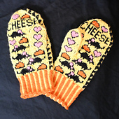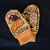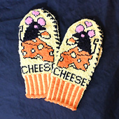 Do you love Cheese? I love cheese. All cheese. Old cheese, new cheese, goat cheese, sheep cheese, even blue cheese. And if you believe all of those old Saturday morning cartoons, the only thing that loves cheese more is mice. Show your love for Cheese by knitting Cheesy mittens with lots of mice also showing their love.
