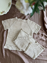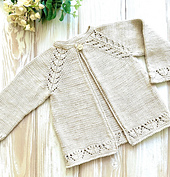 Clara Cardigan is a delicate top-down cardigan designed for babies and children, featuring elegant lace raglan panels and a softly flared A-line body.