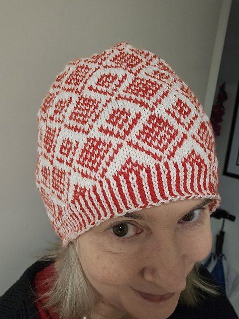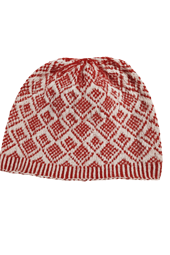The Continuous Waratah is a stranded colourwork beanie with an all over pattern and many fewer long floats compared with the other patterns in this series.