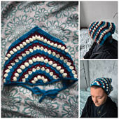 The Blooming Bandana is a textured crochet head scarf featuring the tulip stitch (worked upsidedown though). Designed for intermediate crocheters, this pattern combines written instructions with visual support to guide you through the process. Confident beginners looking for a fun challenge may also enjoy this pattern.