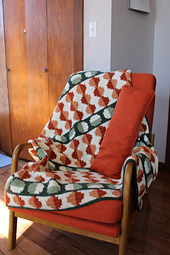 This pattern produces a blanket that is 49” (124cm) wide and 50” (127cm) long, and it has instructions to adjust for other possible sizes. It is worked row-by-row with color changes to create the circular motifs.
