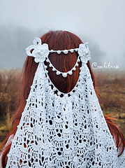 Created using a fine sport weight cotton, something like Ice Yarns Camilla cotton or Sheepjes Catona, this veil is light weight and a lace dream. You will need intermediate crochet skills. The pattern is a repeating lace pattern for the main panel and Irish crochet floral accents.