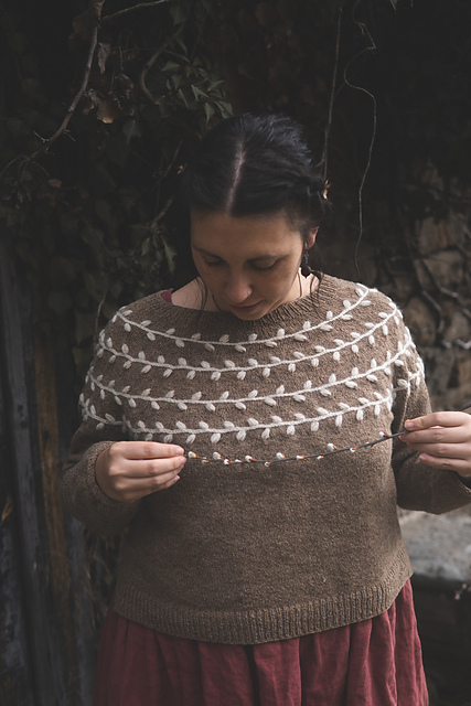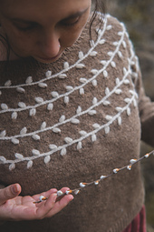 *The yoke of Salzia sweater is inspired by willow blossoms at the very moment they begin to emerge, fragile and full of life. That is why I named it “Salzia”, a completely invented word that alludes to willows, called “salzes” in Catalan.