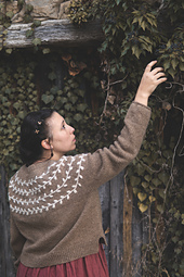 This sweater is worked seamlessly, in the round, from the top down, and is designed with plenty of ease for a comfortable fit. It begins with the neck ribbing, followed by short rows to improve the shaping in that area. The decorative texture then begins: a playful combination of crochet stitches and knitting, adding movement and a special character to the piece. Once the textured section is complete, the stitches for the sleeves and body are separated, and the knitting continues in stockinette stitch until the end.