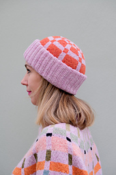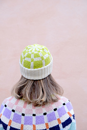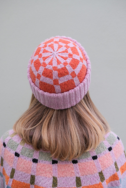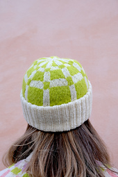 The hat is worked from the bottom up and features a double folded brim that is joined together at the lower edge before continuing upward into the patterned section/crown. This means there are three layers of fabric around the ears when the hat is worn.