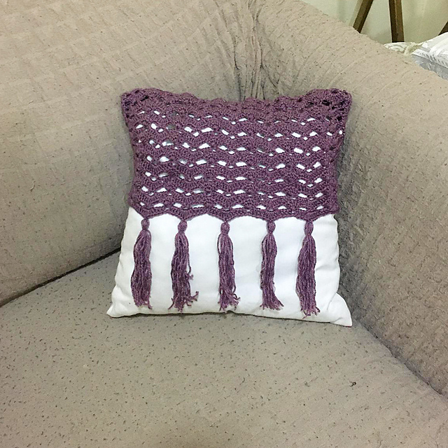 • Then the pillow cover is decorated using tassels being attached to the 4th st of each shell st.