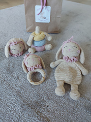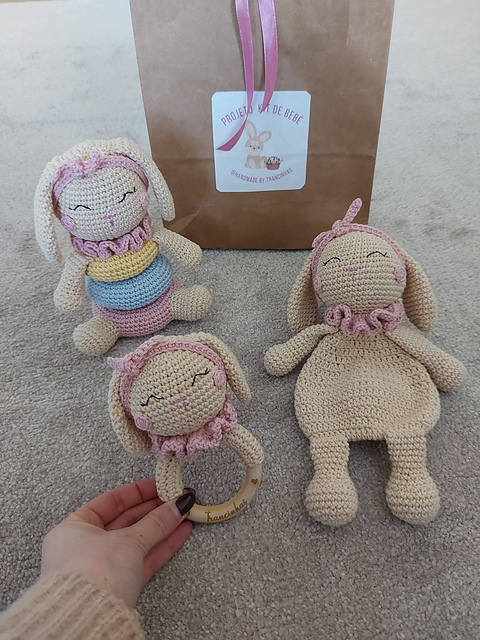 This pattern will guide you step by step through the process of making your own bunny rattle amigurumi.